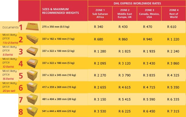 DHL courier delivery rates! (Please note we will update the 2023 pricing soon)